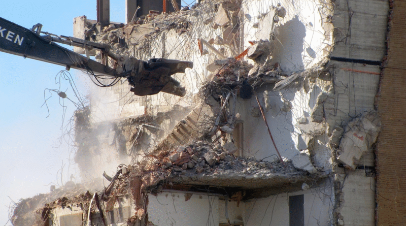 LOS ANGELES, CA — USC’s Demolition Club surprised and delighted prospective members by demolishing Ronald Tutor Campus Center with a wrecking ball – with all of them inside.
